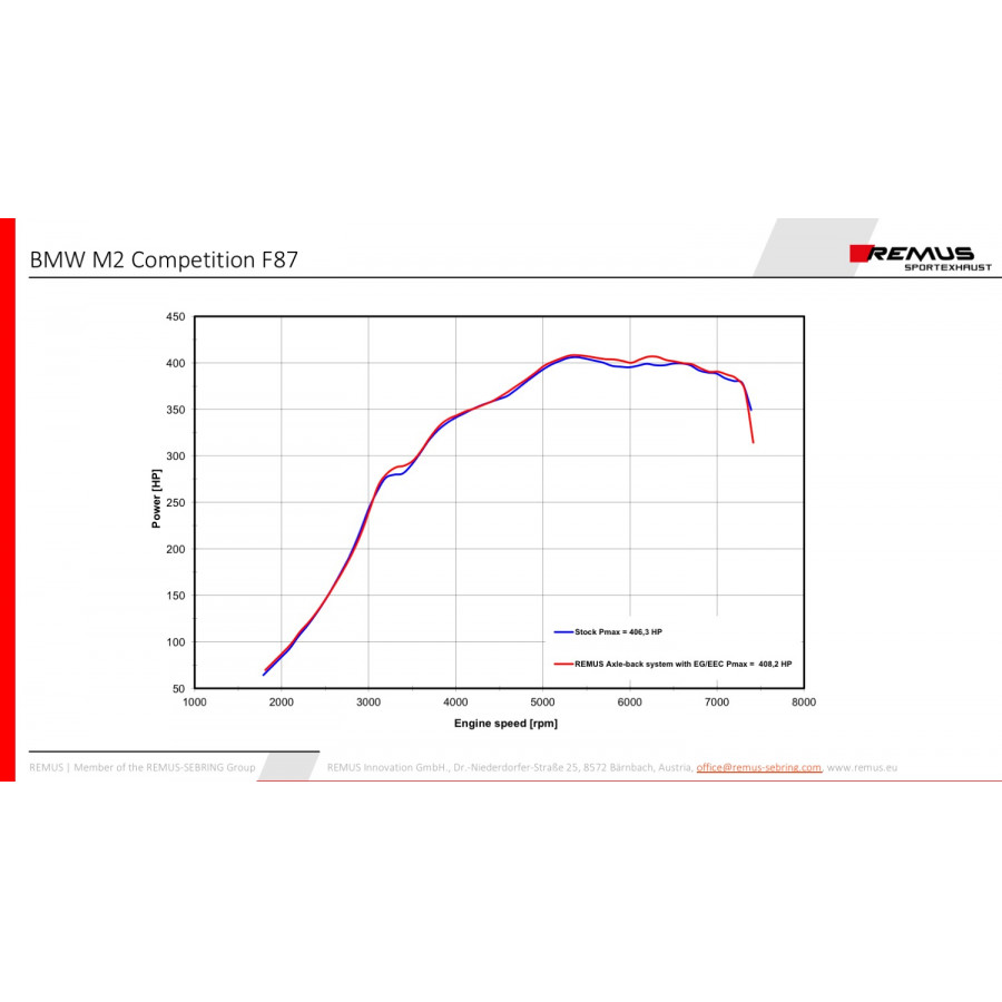 This rear silencer (Axle-back) gives your BMW M2 Competition a sportier sound. The exhaust is completely made of stainless steel produced in Austria.