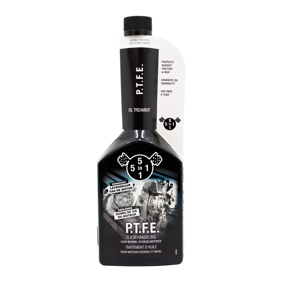 5in1 PTFE Motor Oil Treatment belongs to the top segment of oil additives because of its excellent properties. The PTFE motor oil treatment of 5in1 is a new type of additive in the 5in1 range. This product reduces friction and wear by forming a PTFE lubricating film in the engine, which reduces excessive engine noise.