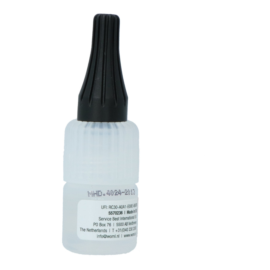 Suitable for tight fitting parts with little play. For difficult, poorly fitting connections use this superglue together with Womi Filler (W237 white or W238 black). Contents 5ml Womi, Max Performance One-Stop-Solutions.