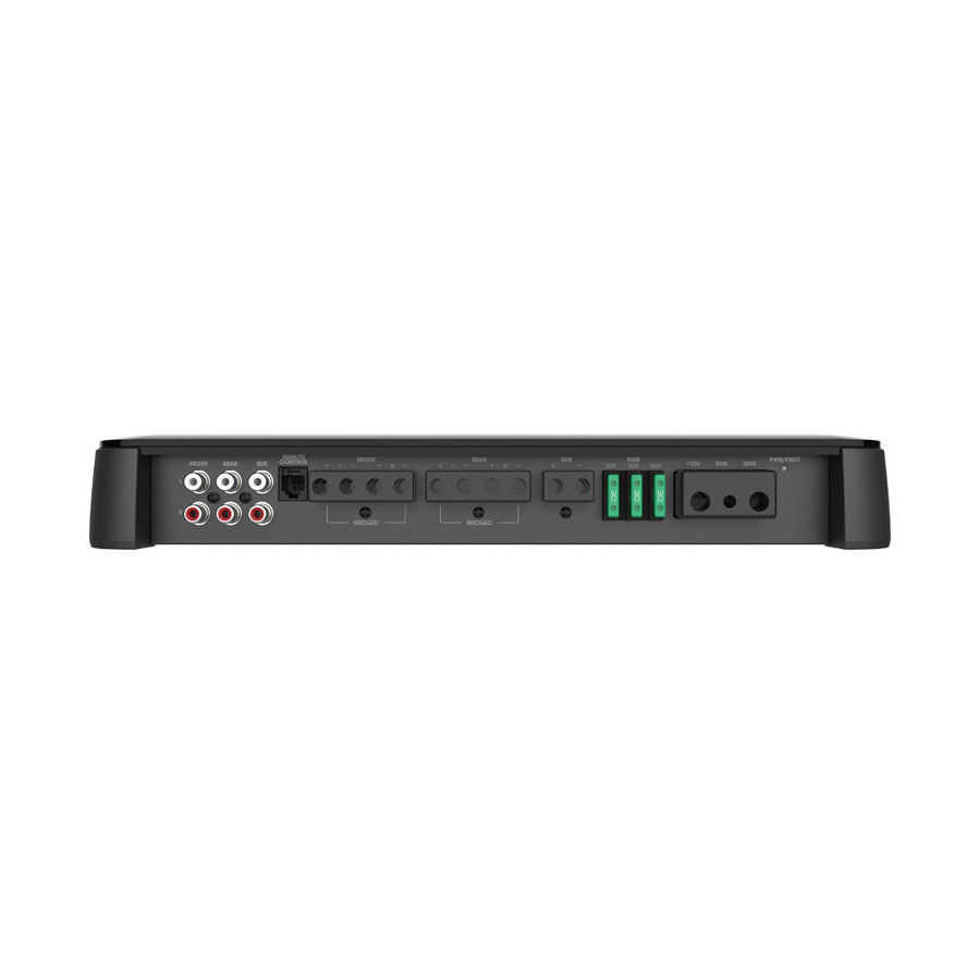 The Club A5055 5-channel amplifier delivers a powerful 50 watts RMS to each of your car's front and rear speakers, and a whopping 500 watts RMS to the subwoofer channel—a much better subwoofer-to-full-range ratio than typical with 5-channel amplifiers. You can also bridge the amplifier to 3-channel mode to deliver 140 watts RMS to your front speakers while driving your subwoofer with 500 watts RMS. Speaker-level inputs allow this amplifier to be integrated into almost any system, even one that uses your car's factory radio. Separate high-pass and low-pass crossovers on the front and rear channels allow you to dial in the perfect rolloff to best suit your speaker placement and cabin acoustics. The subwoofer channel features a low-pass crossover, selectable bass boost and phase switch to optimize subwoofer performance.