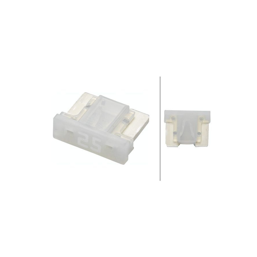 Colour White DIN / ISO 8820-9 Packing Type Blister Pack Temperature range to [°C] +125 Temperature range from [°C] -40 Warranty 2 years Housing material PA (polyamide) Voltage up [V] 58 Height [mm] 8,4 Width [mm] 10,9 Fuse Type Low mini flat plug fuse Contact surface Zinc-coated Assy./disassy. by qualified personnel required! Current [A] 25 Depth (mm) 3,8 -