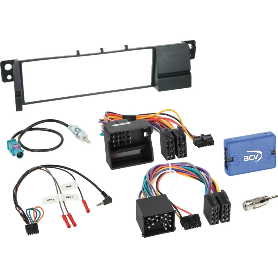 1-DIN RB BMW 3 Series (E46) black> Article>: 281023-01-0 SWI BMW/Mini various vehicles 17Pin/Quadlock IBus > Article: 42sbm00c-0 SWI cable 42s/acv > Multilead various devices > Article: 42ctmultilead-0 Antenna adapter ISO(f)>DIN(m): 1500-00-0 Antenna adapter Fakra(m)>DIN(m) passive: Article: 1524-01-0