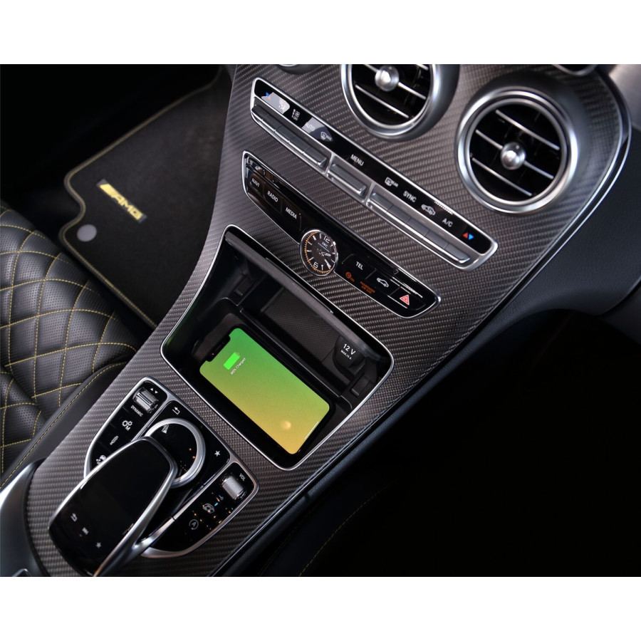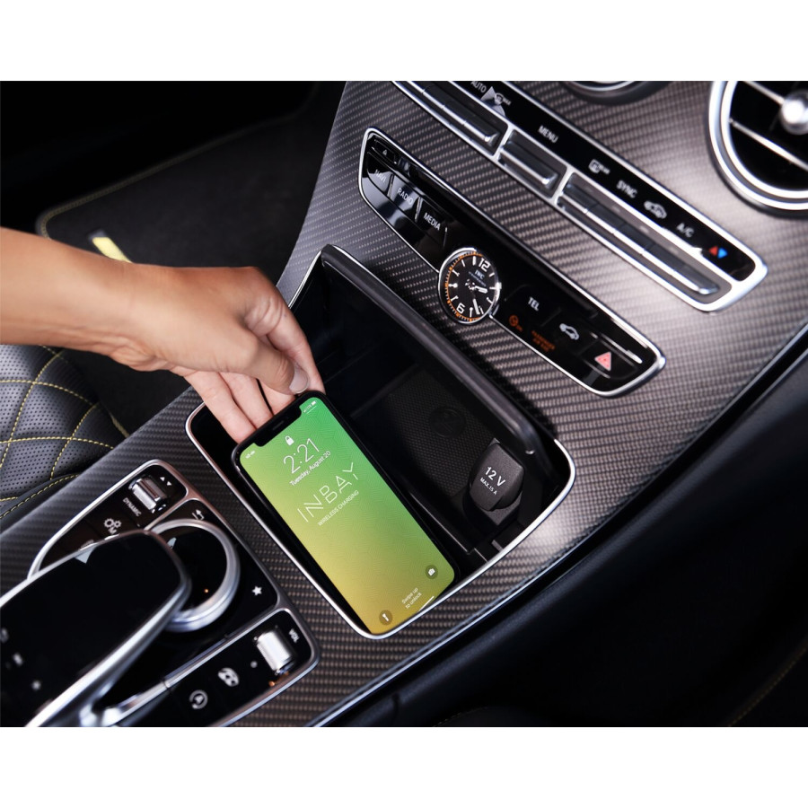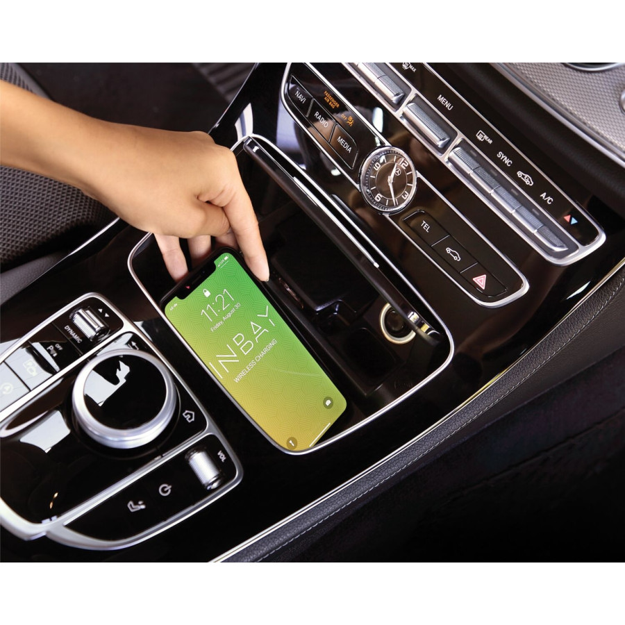 This storage compartment supports wireless inductive charging of smartphones with INBAY®.