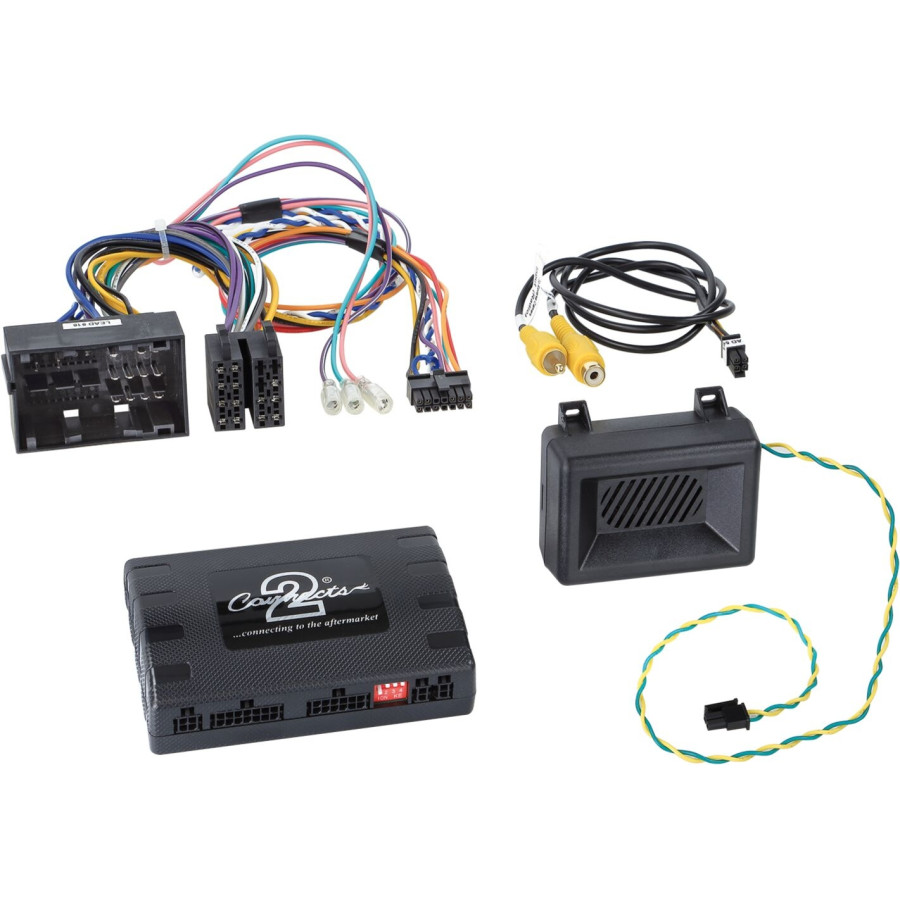This adapter allows vehicle information from OEM navigation, such as air conditioning, parking sensors and seat heating to be displayed on a retrofit device while retaining the functionality of the original steering wheel remote control