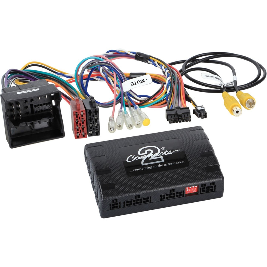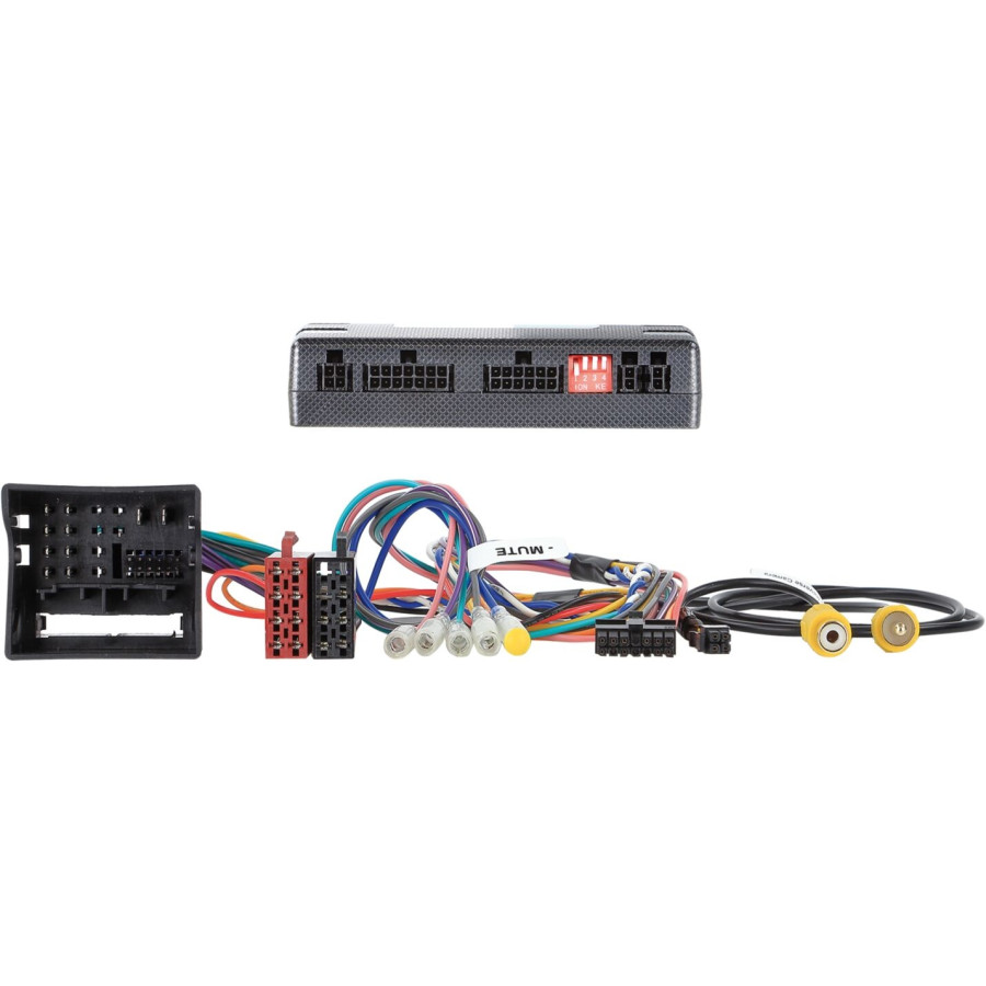 This adapter allows the original steering wheel remote control, extended vehicle settings, optical display of the parking sensors and the climate control to be used for head units with AV input.