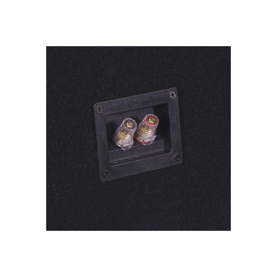 The enclosure is made from 19mm MDF and has a slotted port for minimal port noise. It has recessed side panels, an internal divider and an additional double baffle for maximum rigidity. It is designed with dual 58 litre chambers, each tuned to 45Hz.