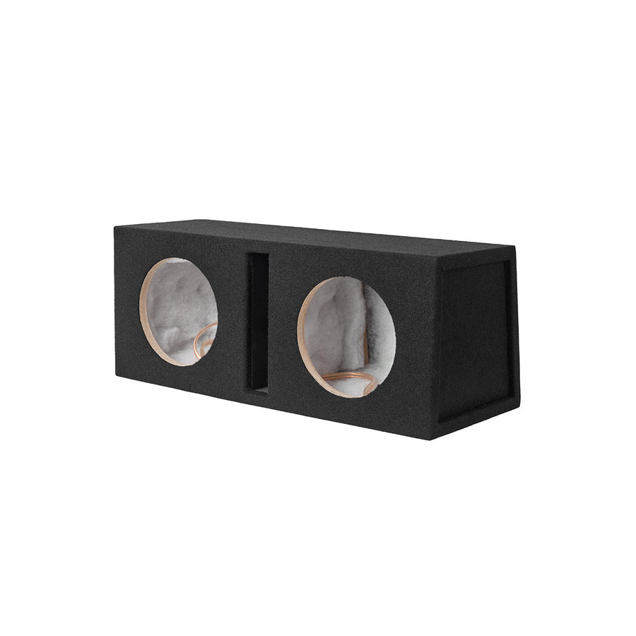 The VE208 is a robust, vented subwoofer enclosure for dual 8" / 20 cm subwoofers. Finished in a pleasing black carpet, this subwoofer enclosure adds a lot of power without sacrificing too much boot space.