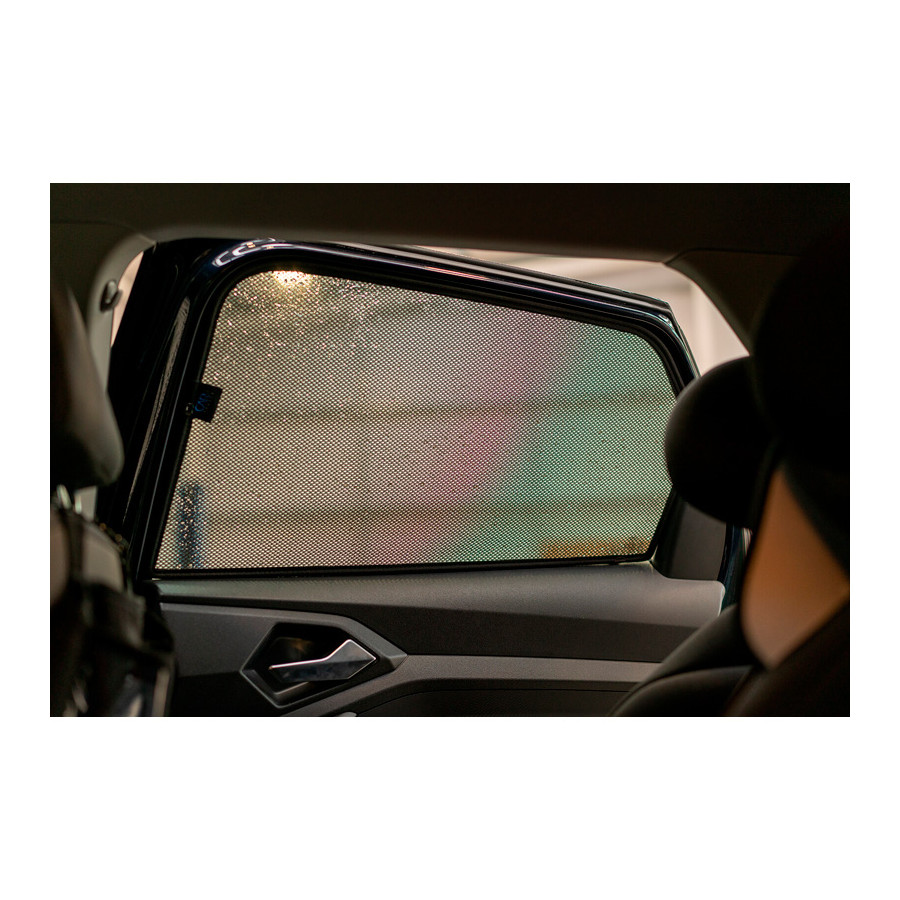 Set of ready-made Car Shades sunblinds for the rear doors, perfect during the beautiful summer weather, long holiday trips and especially for your passengers. The sunshades keep the bright sun out and the specially woven fabric structure gives your car a nice discreet appearance, your windows get the look of tinted windows. You simply click the Car Shades between your window styles and remove them just as easily.