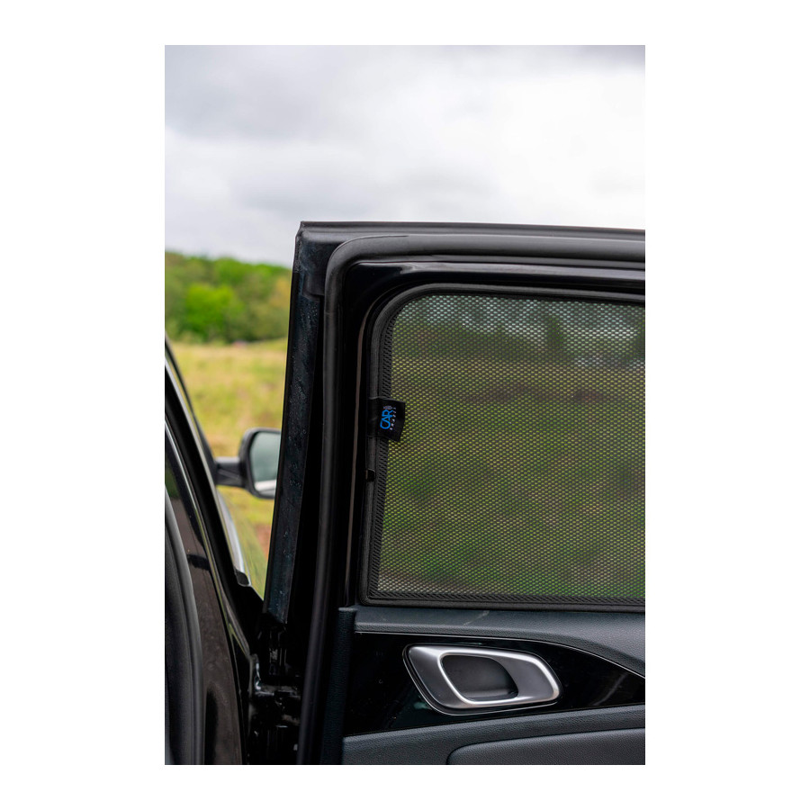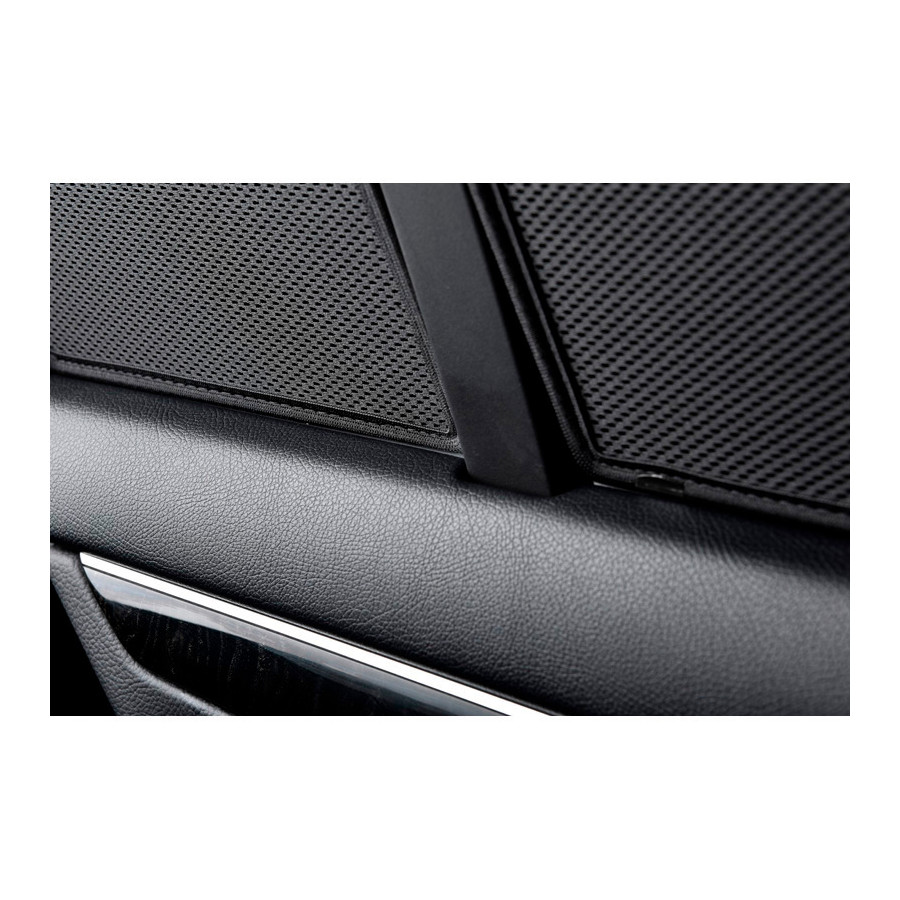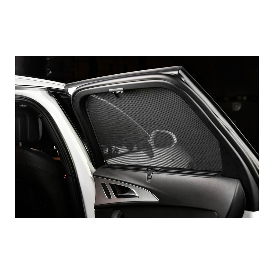 Set of ready-made Car Shades sunblinds for the rear doors, perfect during the beautiful summer weather, long holiday trips and especially for your passengers. The sunshades keep the bright sun out and the specially woven fabric structure gives your car a nice discreet appearance, your windows get the look of tinted windows. You simply click the Car Shades between your window styles and remove them just as easily.