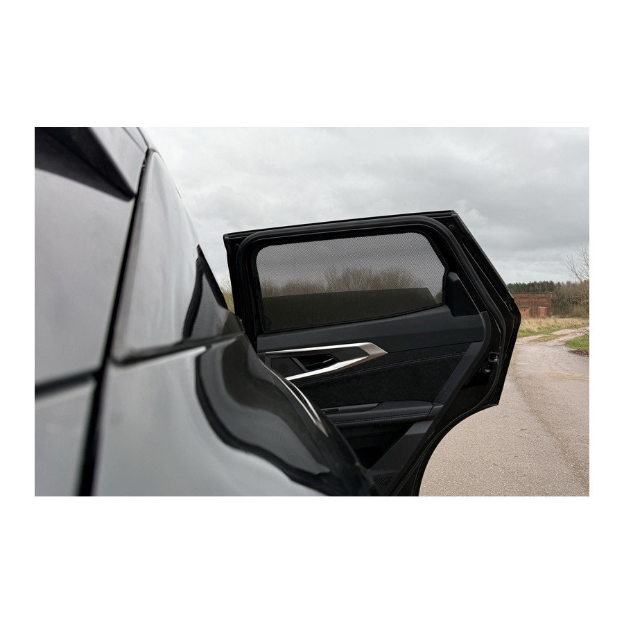 Set of ready-made Car Shades sun blinds, perfect during the beautiful summer weather, long holiday trips and especially for your passengers. The sun blinds keep the bright sun outside and due to the specially woven cloth structure they give your car a nice discreet appearance, your windows get the look of tinted windows. You simply click the Car Shades between your window frames and remove them just as easily.