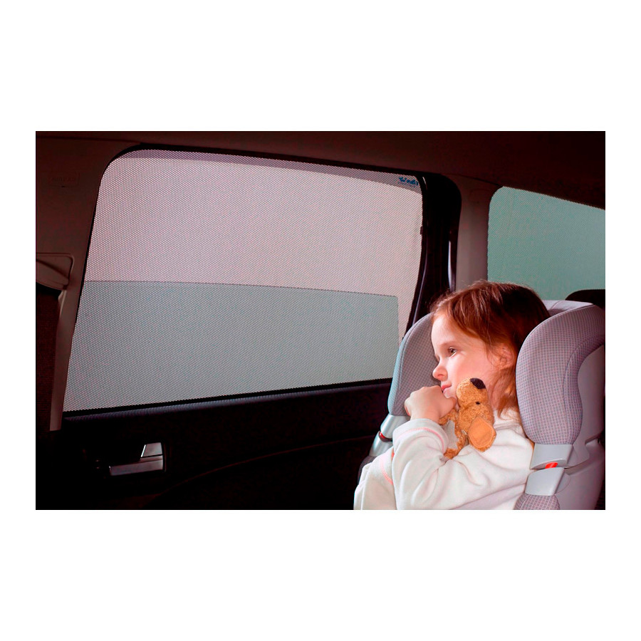 You simply click this ClimAir Sonniboy car sun blind between your window styles and remove them just as easily. They are the perfect alternative to window film, sun curtains and expensive privacy glass because they combine everything in 1. The Sonniboy Shades keep the sun out, you can simply drive with your window open. This way you can let the cool wind in during the warm weather. Even with a completely open window, sun rays and insects have no chance to penetrate. For cars without air conditioning, it is an indispensable solution against the sun and heat. Each set of Sonniboy Shades consists of ready-made sunshades for all windows from the B-pillar.