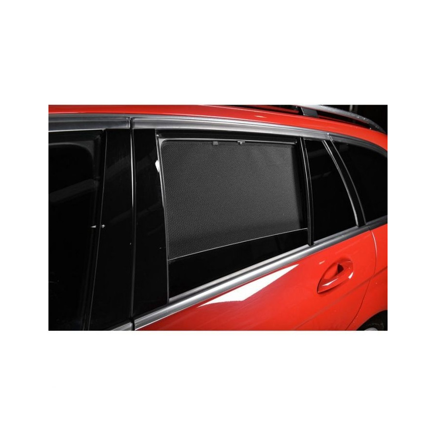Set of ready-made Car Shades sunblinds for the rear doors, perfect during the beautiful summer weather, long holiday trips and especially for your passengers. The sunshades keep the bright sun out and the specially woven fabric structure gives your car a nice discreet appearance, your windows get the look of tinted windows. You simply click the Car Shades between your window styles and remove them just as easily.