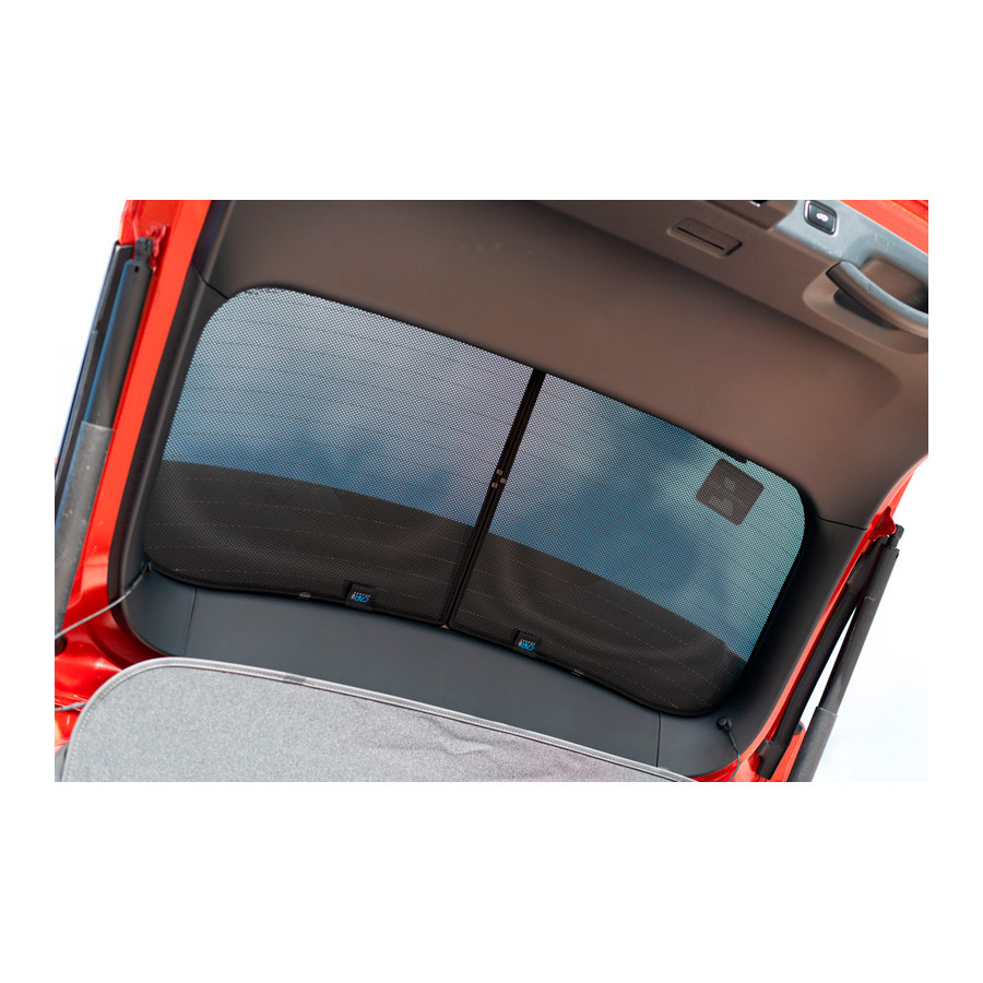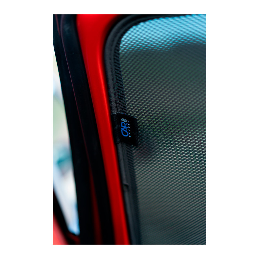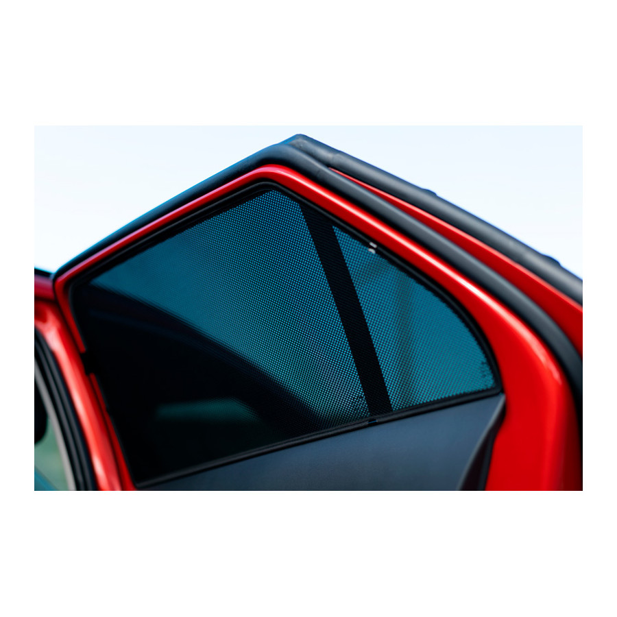 You simply click the Privacy Shades car sunshades between your window frames and remove them just as easily. They're the perfect alternative to window film, blinds, and expensive privacy glass because they combine everything in one. Privacy Shades keep the sun out, allowing you to drive with your windows open. This way, you can let in a cool breeze during warm weather. Even with a fully open window, sun rays and insects have no chance of penetrating. For cars without air conditioning, they're an essential solution against the sun and heat. Each Privacy Shade set consists of custom-fit sunshades for all windows from the B-pillar onward.