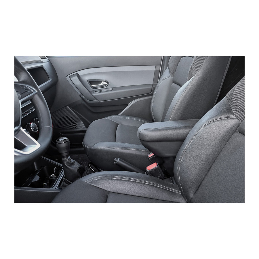 Armrest Artificial leather suitable for Renault Express Cargo 2021 - Armrests contribute significantly to driving comfort by allowing the user to support the arm and thus relax and improve the sitting position. In addition, each support is equipped with a handy storage space for items that are easy to keep at hand, such as change, keys or your phone. AutoStyle armrests are tailor-made for numerous car types, so you can be sure that this part fits properly in your car. without compromising driving safety or the car interior. Moreover, they can be tilted 90°, so you can always fold them up if necessary. Material: It is important that these items can withstand a blow and can carry some weight. Our armrests are made of hard plastic and the top is made of artificial leather, which provides extra comfort and does not wear out quickly. This material also often fits well in the interior of different cars. Installation: Easy to install by placing 4 dots on the handbrake console with a pencil and drilling 4 holes of Ø 3 mm (diameter) in these places. After this, you can screw the supplied screws into the 4 holes with a screwdriver. (Installation may differ per car type) If you would like help installing your armrest, you can always go to your AutoStyle dealer.