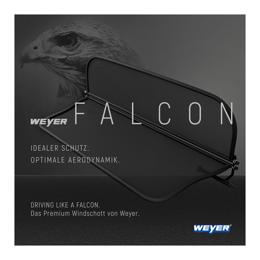 Drive luxuriously in your convertible with the Weyer Falcon Premium Windscreens: more driving pleasure, maximum comfort, unlimited aesthetics. Upgrade your car now with the new premium line and be inspired by its unique functionality, modern, aerodynamic design and the highest quality.