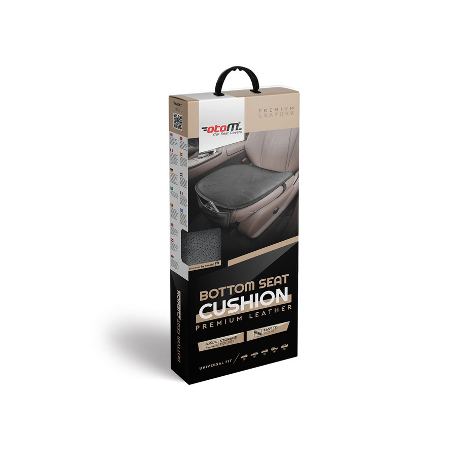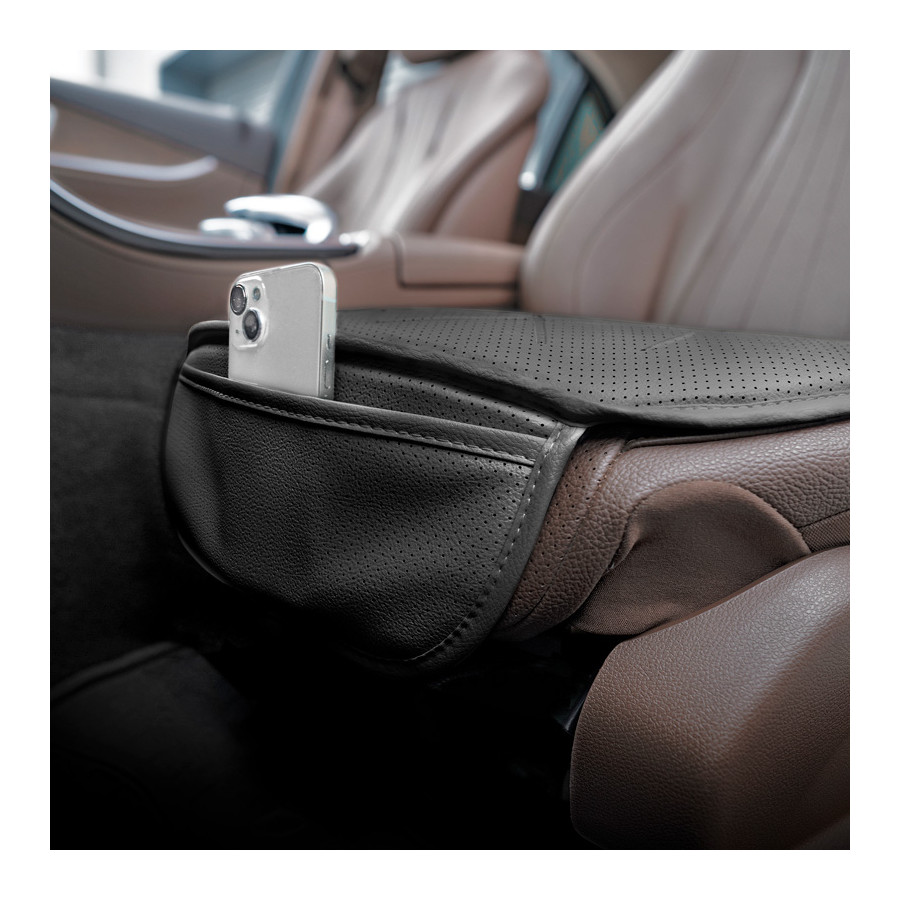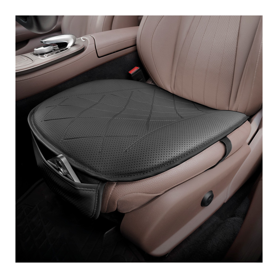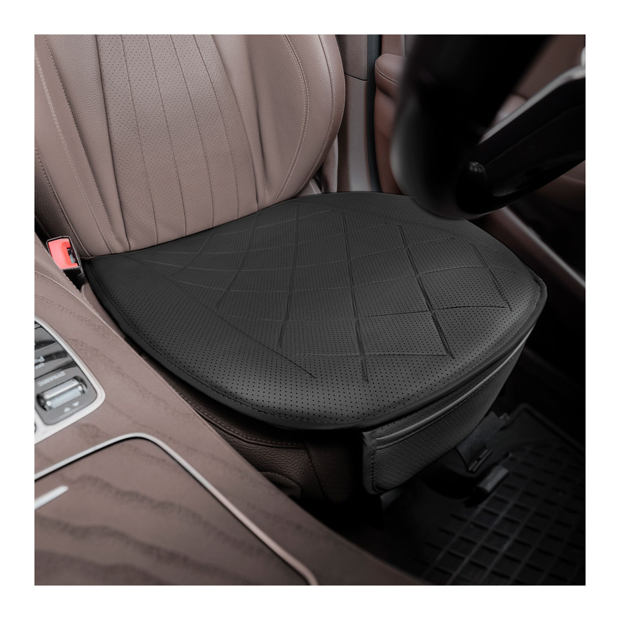 Universal Seat Cushion 'Bottom' Black Leather High quality universally comfortable and protective seat cushion made of high-quality leather. Specifications: - Made of leather - Easy to attach - Easy to clean - Free from phthalates - UV resistant - Perfect universal fit applicable to various car types and vans and trucksBenefits:- Includes storage space- Protective and comfortable in one- Quick and easy installation