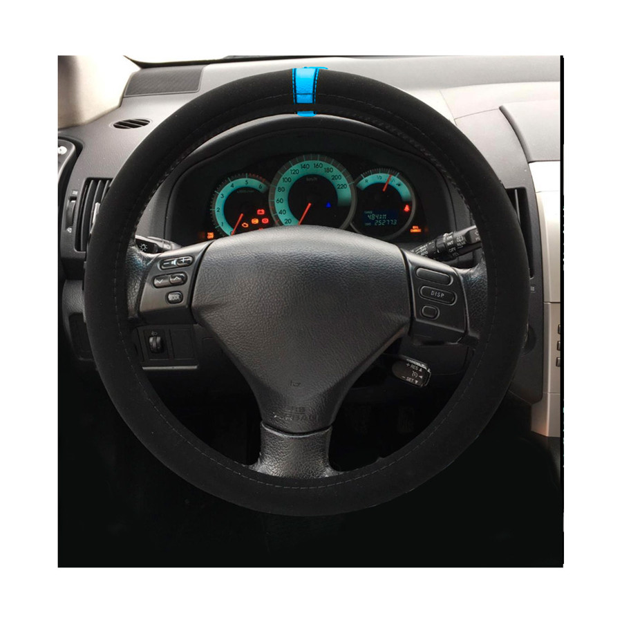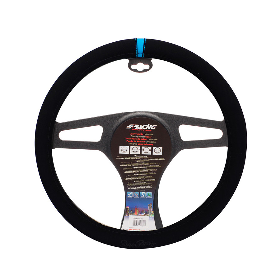 Simoni Racing Steering Wheel Cover Carrera Look - Black Microfiber + Blue Marking - 37-39cm
