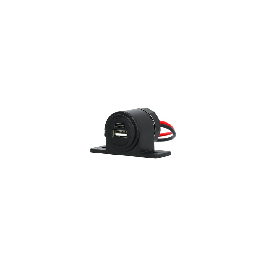 Carpoint 12/24-volt surface-mounted socket with a 5-volt, 2.4-amp USB-A and USB-C connection. For simultaneously charging up to two devices, such as a smartphone, navigation system, tablet, or laptop. Screw mounting with a 45mm center-to-center spacing. With a color-coded 15cm plus and minus cable and a cable lug.