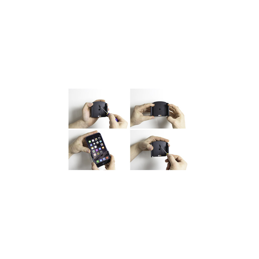 Adjustable holder. Suitable for devices with a skin with the following dimensions: Width: 75-89 mm, Thickness: 2-10 mm.