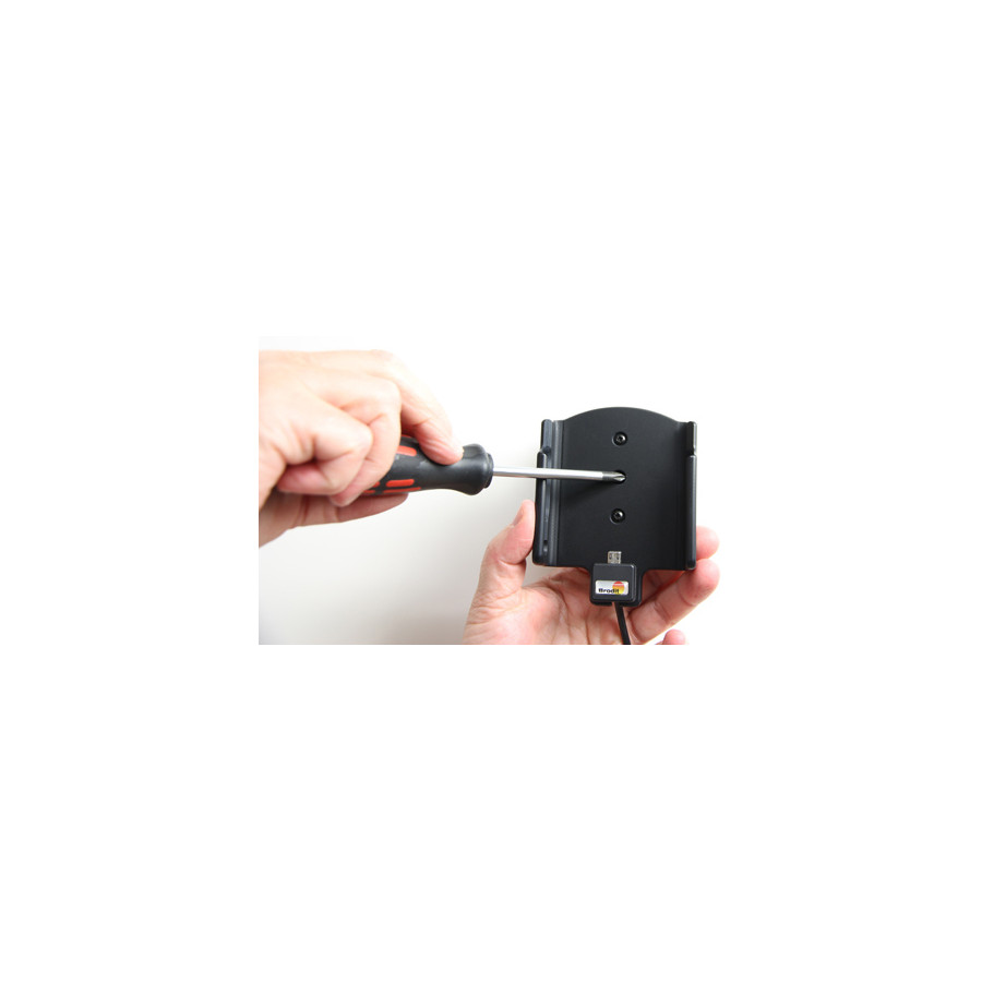 Keep your phone battery fully charged in an active holder, always within reach! Neat, discreet and handy. Custom-made with a perfect, secure fit. Use a USB cable with a sig-plug adapter to connect to the vehicle's USB outlet or 12/24V socket. You have full access to the camera and all buttons when the device is in the holder. It is easy to slide the device into place in the holder, so that it is connected to charging and remove it from the holder when you leave the car.
