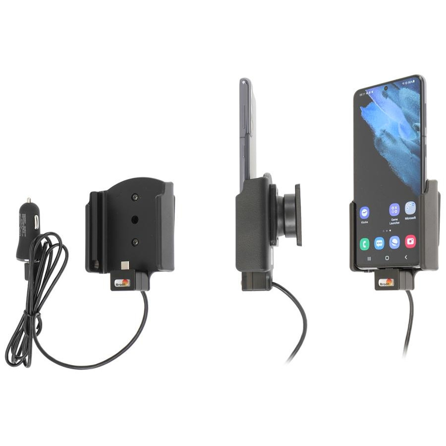 Keep your phone's battery fully charged in an active holder, always within easy sight and reach! Neat, discreet and convenient. Custom made with a perfect, firm fit. With USB cable with cig-plug adapter, choose to connect either to the vehicle's USB outlet or the 12/24V socket. You have full access to the camera and all buttons when the device is in the holder. It is easy to slide the device into place in the holder so it connects to the charging, and to take it out of the holder when leaving the car.
