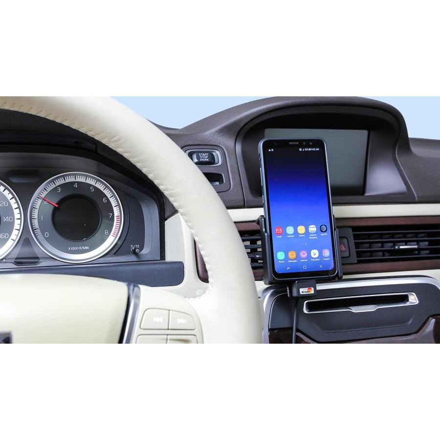 Keep your phone battery fully charged in an active holder, always within reach! Neat, discreet and handy. Custom-made with a perfect, secure fit. Use a USB cable with a sig-plug adapter to connect to the vehicle's USB outlet or 12/24V socket. You have full access to the camera and all buttons when the device is in the holder. It is easy to slide the device into place in the holder, so that it is connected to charging and remove it from the holder when you leave the car. Only fits devices without the supplied back cover.