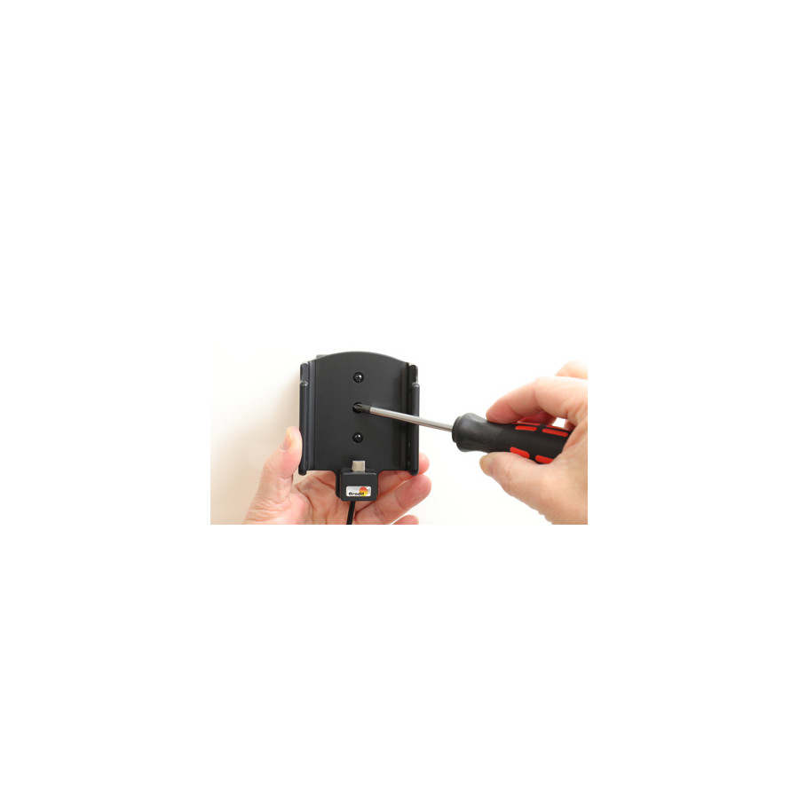 Keep your phone battery fully charged in an active holder, always within reach! Neat, discreet and handy. Custom-made with a perfect, secure fit. With cig-plug cable, 2A charging via the Micro-USB connector. You can charge a second device via the USB A output in the cigarette lighter, 1A charging. You have full access to the camera and all buttons when the device is in the holder. It is easy to slide the phone into place in the holder, so that it is connected to the charging and remove it from the holder when you leave the car.