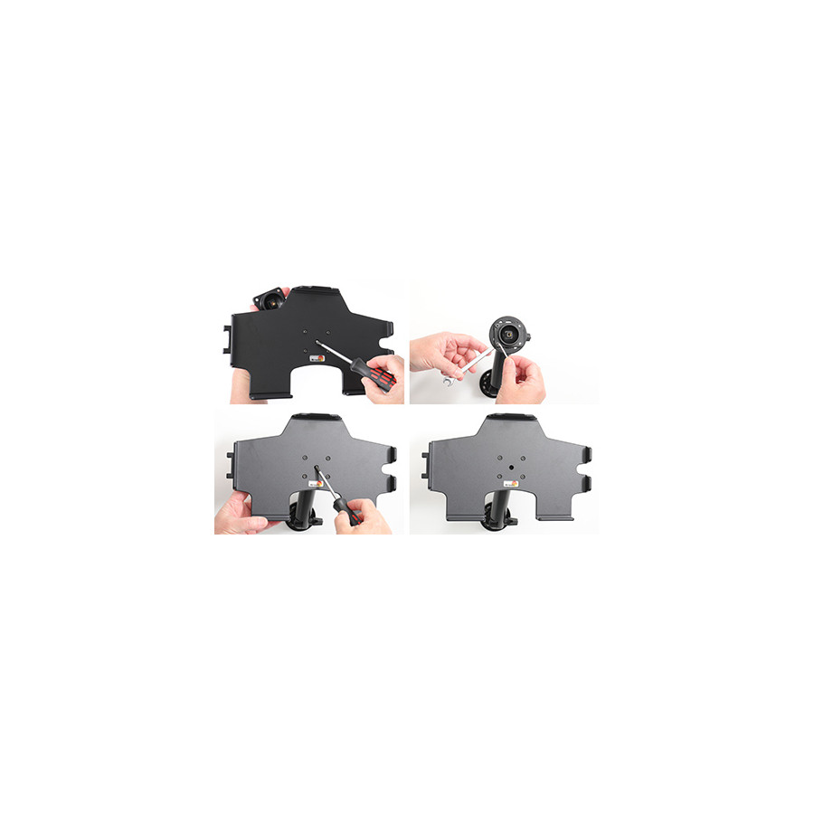 An installation of a tablet on the dashboard of a vehicle is always at the customer's own responsibility. Brodit recommends using tablets on the car's headrest, installed on a Brodit headrest mount.