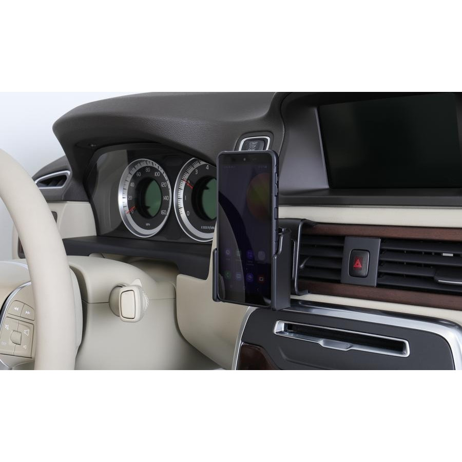 Keep your phone in a passive holder and you will always have it within easy sight and reach! Neat, discreet and convenient. Custom made with a perfect, firm fit. You have full access to the camera and all buttons and outlets when the device is in the holder. You can connect a charging cable or portable hands-free to the device when it is in the holder.