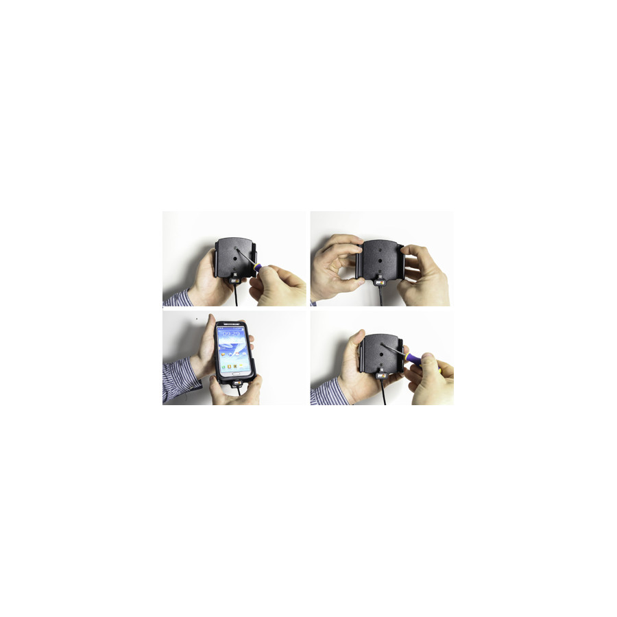 The adjustable holder fits devices with and without skin with the following dimensions: width: 75-89 mm, thickness: 12-16 mm. Adjustable holders come in different sizes. Measure your device and compare it to the specifications of the holder to make sure you have chosen the right product (if you are using a skin: measure the device with the skin in place).