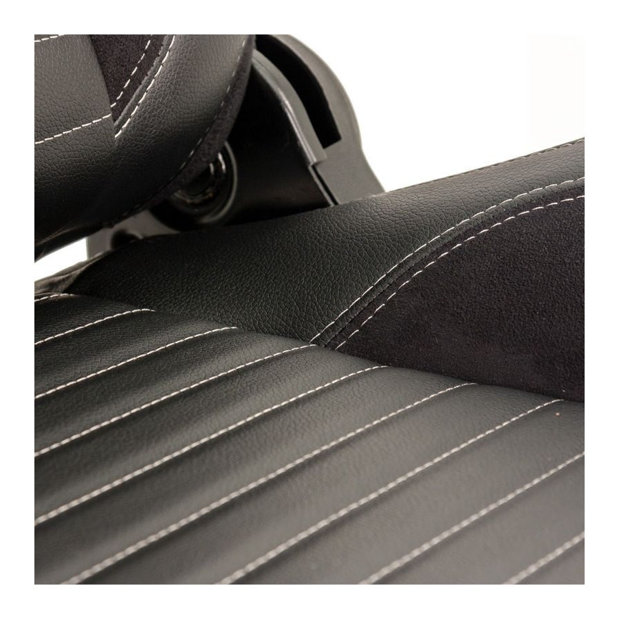 Sports seat 'Classic II' - Black Artificial leather + Suede + Gray stitching - Left side adjustable backrest - incl.