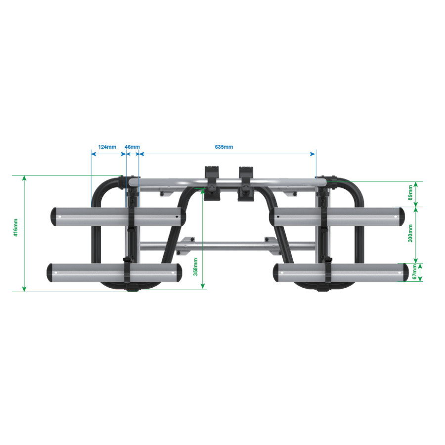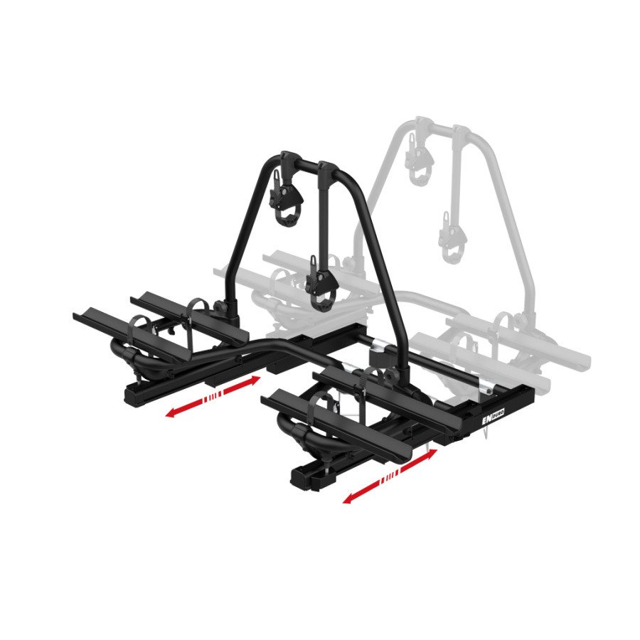 This bike carrier has the same functionalities as the BC260 but is equipped with a more compact frame, making it suitable for shorter drawbars. With a sliding range of 500 mm, drawbar boxes with a hinged flap can simply be opened! Unique to this carrier is the sliding system. This easy-to-use sliding system ensures that the storage space of the caravan is always accessible. It is a matter of unlocking the safety pins and the carrier can be slid forward. The bikes can simply remain on the carrier!