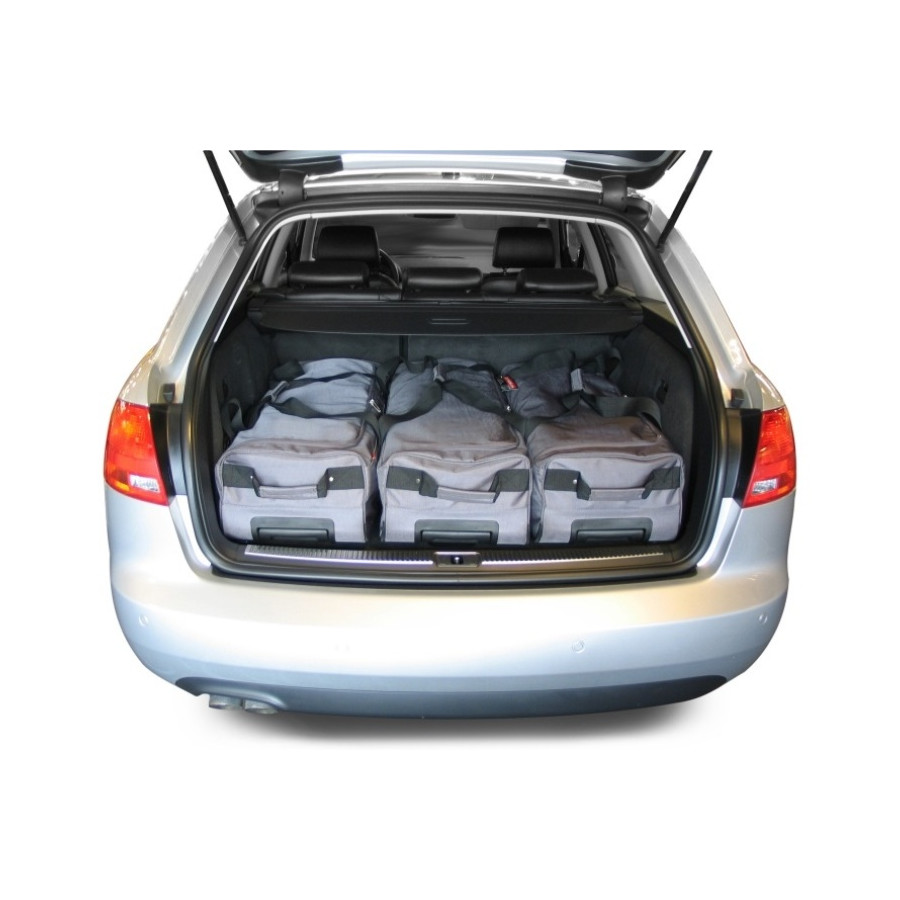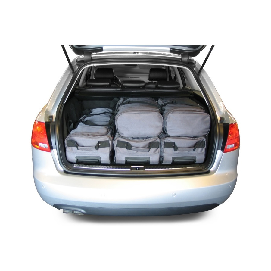 Each set consists of a bottom layer of 2 or 3 handy trolley bags with wheels and telescope handle. On top of that comes a layer of 2 or 3 matching handbags. Car-bags travel bags are available for Audi, BMW, Citroën, Hyundai, Peugeot, Volkswagen, Volvo and all other conventional brands.