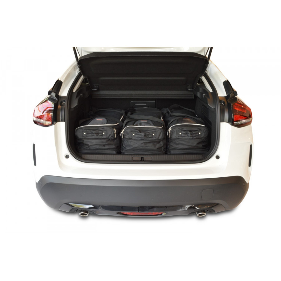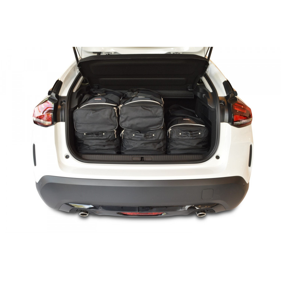 Each set consists of a bottom layer of 2 or 3 handy trolley bags with wheels and telescopic handle. On top of that comes a layer of 2 or 3 matching handbags. Car-bags travel bag sets are available for Audi, BMW, Citroën, Hyundai, Peugeot, Volkswagen, Volvo and all other common brands.