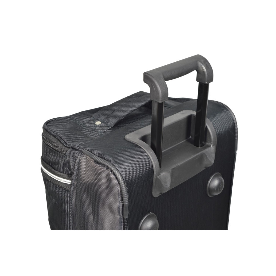 Packing has never been so convenient and fast, because you know: if it fits in the Car-Bags travel bag set, it will automatically fit in your trunk. Most sets consist of a bottom layer of handy trolley bags with wheels and telescopic handle and a top layer of matching travel bags. A Car-Bags travel bag set is tailor-made for each car model. The set is therefore not composed of a fixed assortment of standard bags, but the sizes of the trolley bags and travel bags are precisely adapted to the luggage compartment. As a result, it is used optimally in width, length and height. Car-Bags travel bags are usually 30-35 cm wide, so that folded clothes fit well. the bags are not too big, because big bags are heavy and difficult to handle. In addition, the contents of large bags get mixed up more easily.