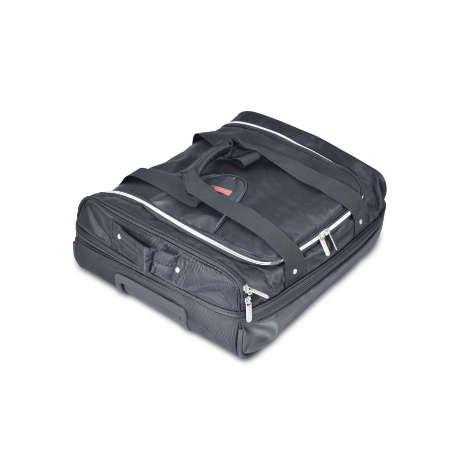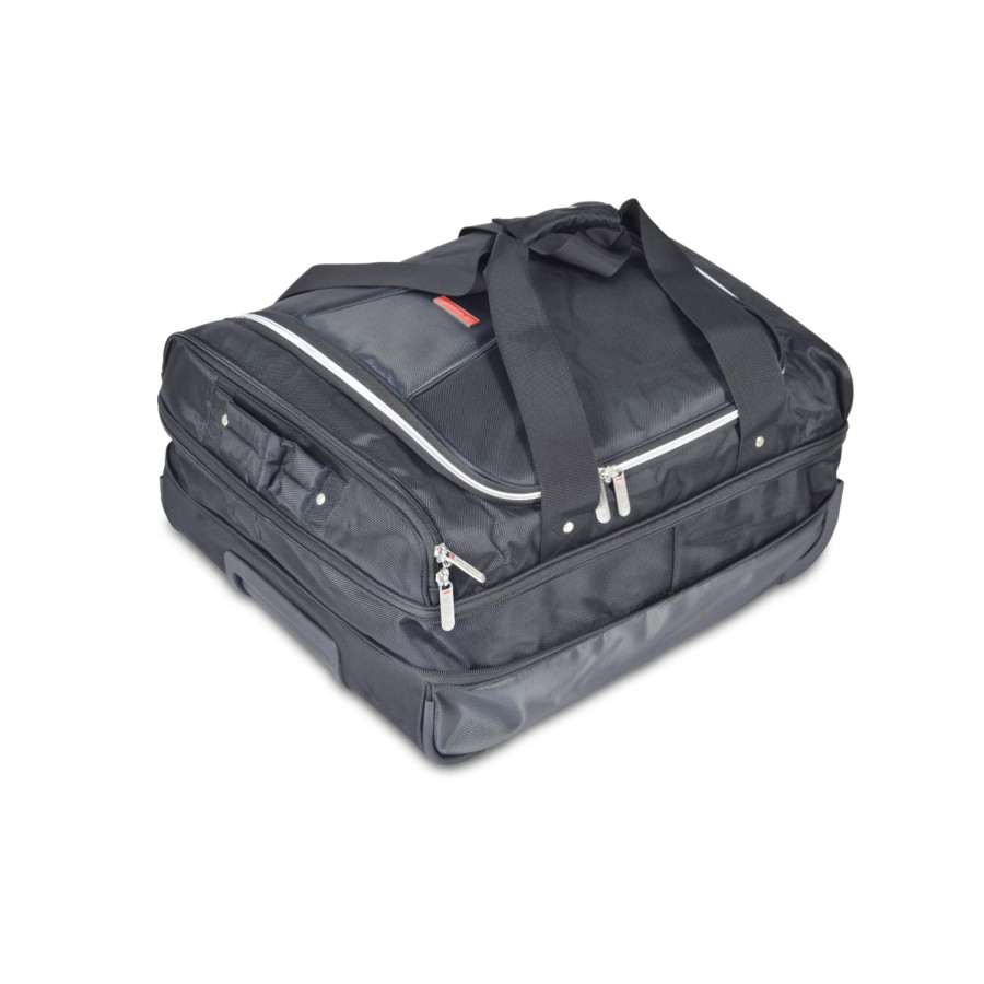 Each set consists of a bottom layer of 2 or 3 handy trolley bags with wheels and telescopic handle. On top of that comes a layer of 2 or 3 matching handbags. Car-bags travel bag sets are available for Audi, BMW, Citroën, Hyundai, Peugeot, Volkswagen, Volvo and all other common brands.