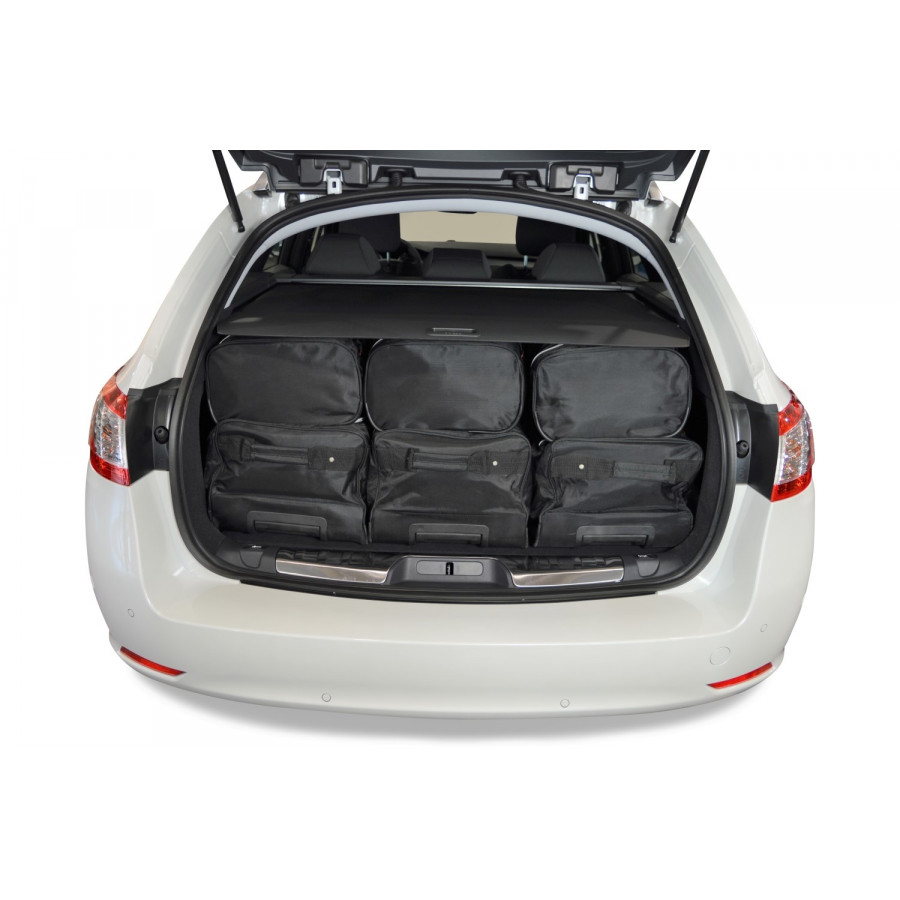 Each set consists of a bottom layer of 2 or 3 handy trolley bags with wheels and telescope handle. On top of that comes a layer of 2 or 3 matching handbags. Car-bags travel bags are available for Audi, BMW, Citroën, Hyundai, Peugeot, Volkswagen, Volvo and all other conventional brands.