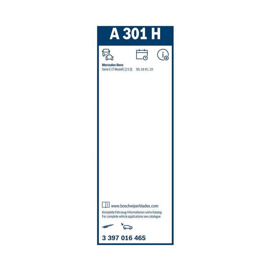 | Windscreen wiper type | Flatblade |