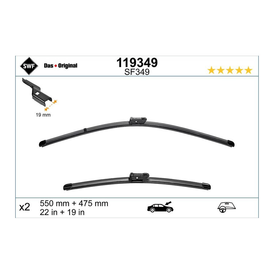 | Windscreen wiper type | Flatblade |
