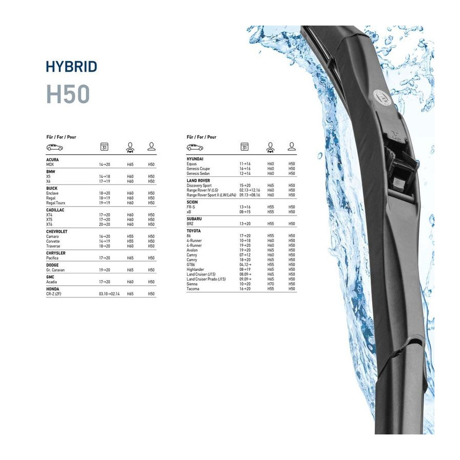 | Wiper blade type | Hybrid wiper blade |