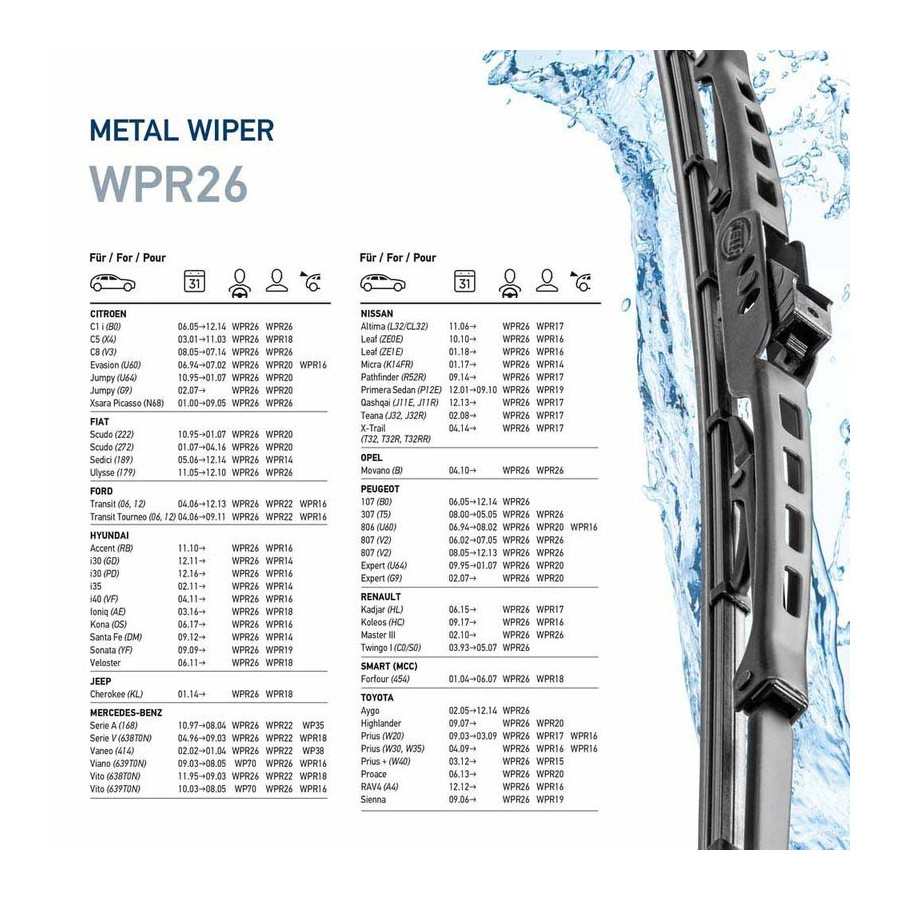 Windshield wiper metal 9XW 190 253-261 Hella